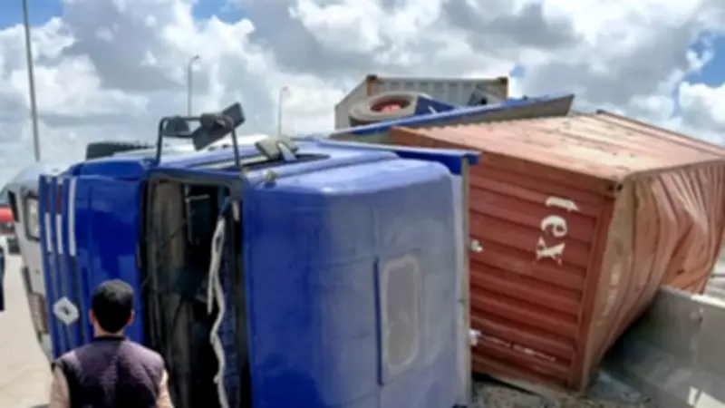 حادث مروع: انقلاب سيارة نقل ثقيل واشتعال النيران بطريق برج العرب بالإسكندرية