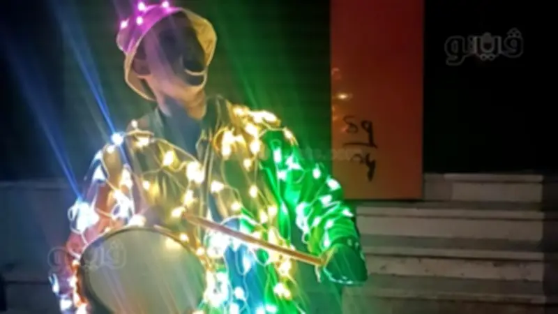 لم يعد مصطفى يكتفي بالطبلة وصوته المميز لإيقاظ الأهالي لتناول وجبة السحور، بل ارتدى شبكة مضيئة من اللمبات الصغيرة تغطي جسده بالكامل. تعمل هذه الشبكة ببطارية يضعها في جانبه، مما يجعلها تضيء ككتلة من النور وسط ظلام الليل، في مشهد غير مألوف يخطف أنظار الصغار قبل الكبار.