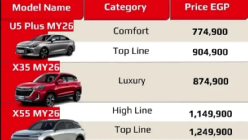 - زيادة سعر سيارة BAIC U5 Plus بقيمة 50 ألف جنيه.