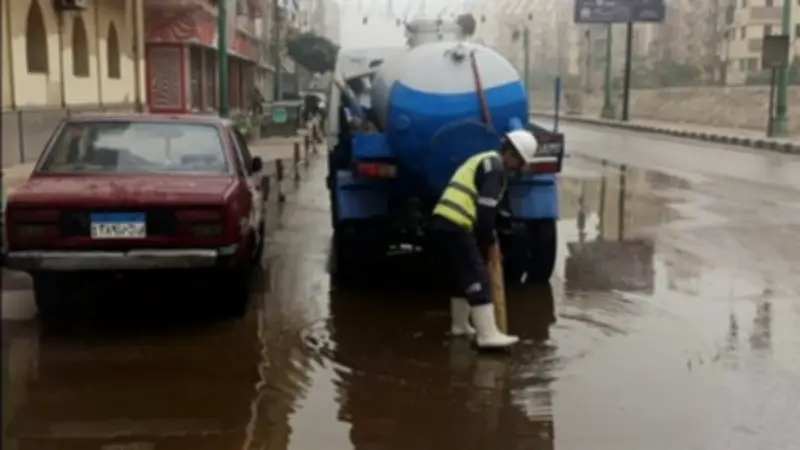 الدفع بسيارات الكسح وشفط المياه لمواجهة التجمعات المائية