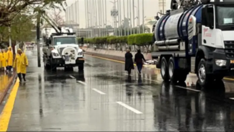 - الدفع بسيارات ومعدات شفط المياه في مختلف ساحات المطار وممراته، لضمان عدم تراكم المياه.