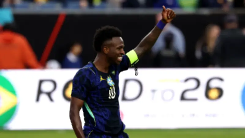 ظهر فينيسيوس جونيور، نجم ريال مدريد والمنتخب البرازيلي، بعيدًا تمامًا عن مستواه المعتاد والمتوقع، رغم أنه كان يرتدي القميص الأسطوري رقم 10 في غياب زميله رودريجو جويس بسبب الإصابة. وأصبح فينيسيوس حاملًا لهذا الرقم التاريخي مع السامبا، ولن يتخلى عنه إلا في حالة عودة نيمار قبل كأس العالم المقبل.
