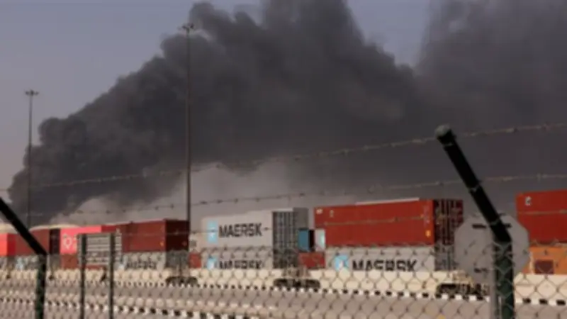 واستمرت أعمدة دخان سوداء كثيفة في التصاعد من منطقة ميناء جبل علي، حيث اشتعلت النيران في أحد الأرصفة بسبب حطام ناجم عن اعتراض صاروخ.