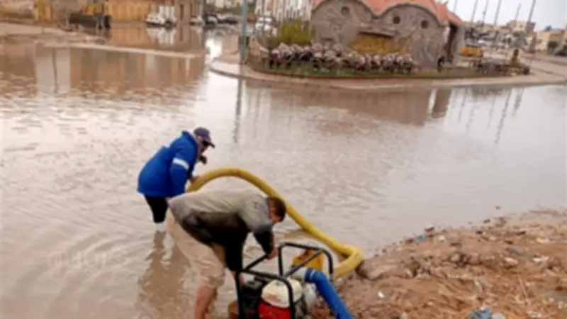 فرق الطوارئ بمطروح ترفع مياه الأمطار وتفتح الشوارع أمام المواطنين