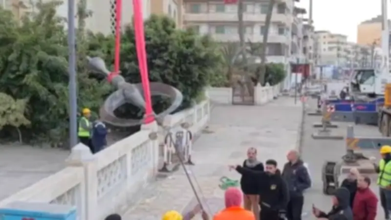 نجاح عملية إزالة هلال مئذنة مسجد البحر في دمياط بعد رصد ميله