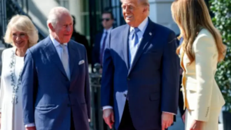 وصل الزوجان الملكيان البريطانيان إلى قاعدة أندروز المشتركة قرب واشنطن، حيث استقبلهما أطفال على السجادة الحمراء حاملين باقات الزهور. وفي اليوم التالي، التقى تشارلز وترامب خارج الرواق الجنوبي للبيت الأبيض، وتبادلا المصافحة والتعليقات الودية تحت أشعة الشمس الدافئة.