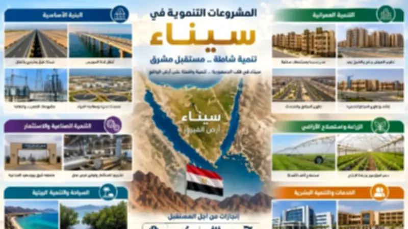 وإذا كانت المعركة العسكرية قد حررت سيناء، فإن التنمية هي التي تضمن بقاءها حية نابضة. فمنذ تولي الرئيس عبد الفتاح السيسي المسؤولية، وضعت تنمية سيناء على رأس أولويات الدولة، نظرا لأهميتها الاستراتيجية، حيث كلف الرئيس الحكومة والقوات المسلحة بسرعة تعمير وتنمية أرض الفيروز. وقد شملت جهود التنمية في سيناء مختلف مناحي الحياة، حيث تضمنت إنشاء مناطق ومجمعات صناعية وزراعية وتعدينية، ومجتمعات عمرانية حديثة، إلى جانب مد الطرق والجسور والأنفاق وبناء بنية تحتية متكاملة. كما أولت الدولة اهتماما خاصا ببناء الإنسان، وتوفير سبل العيش الكريم له في مختلف المجالات.