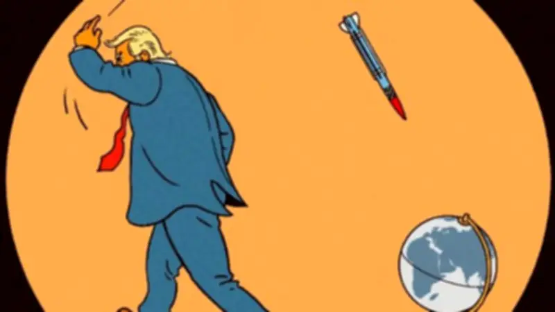 في مشهد مأساوي يتداخل فيه استخراج الجثث من تحت أنقاض غزة، مع مقتل تلميذات في مدرسة ابتدائية بإيران، وتهجير أكثر من مليون شخص قسراً من منازلهم في جنوب لبنان، يظهر الرئيس الأمريكي دونالد ترامب في صورة "الفاشي المضحك" و"النازي التافه"، كما تصفه الكاتبة السودانية المقيمة بلندن نسرين مالك في مقالها بصحيفة ذا جارديان البريطانية.