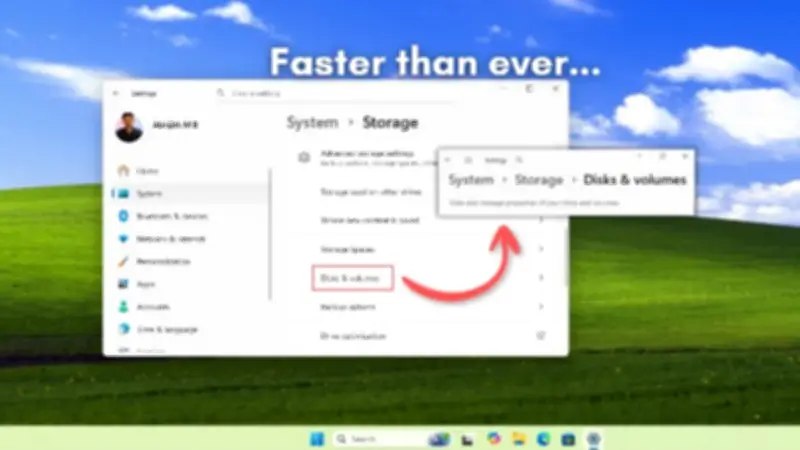 أشار التقرير إلى أن مايكروسوفت حسّنت أداء صفحة التخزين داخل إعدادات ويندوز، وتحديدًا المسار: الإعدادات > النظام > التخزين > إعدادات التخزين المتقدمة > الأقراص والأحجام (Disks & Volumes)، وهي الصفحة المسؤولة عن عرض تفاصيل الأقراص والأقسام. في السابق، كان فتح خصائص الأقراص الكبيرة أو الأجهزة التي تحتوي على عدد كبير من الأقسام يستغرق وقتًا ملحوظًا، وأحيانًا يتسبب في تهنيج واجهة الإعدادات للحظات قبل عرض البيانات.