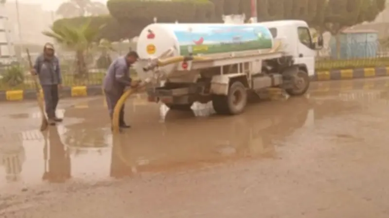 - الدفع بسيارات الكسح لرفع التجمعات أولاً بأول.