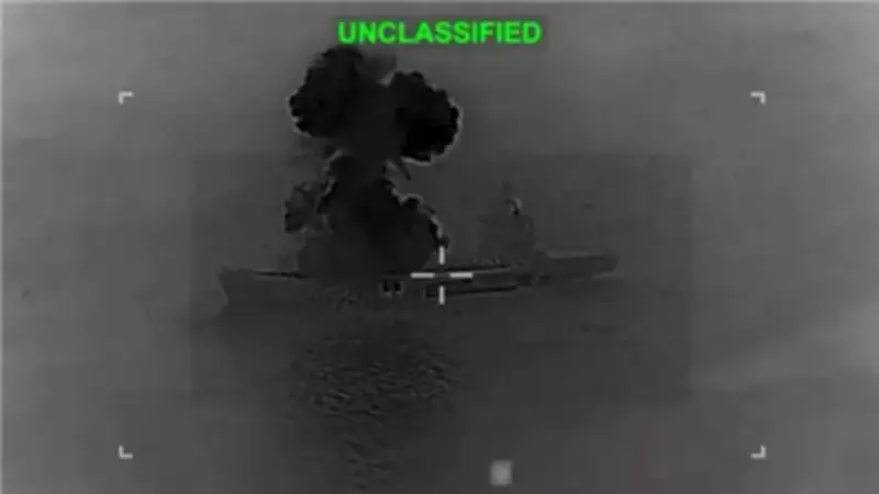 الجيش الأمريكي يوثق لحظة تدمير حاملة طائرات إيرانية مسيرة في عرض البحر