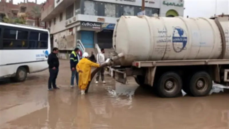 استمرار جهود رفع تجمعات مياه الأمطار في شوارع القليوبية لليوم الثاني على التوالي