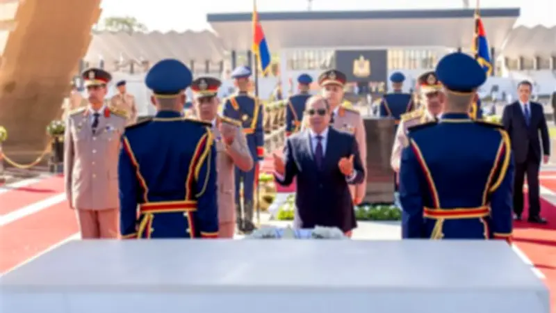 بعد ذلك، قام الرئيس السيسي بوضع إكليل الزهور على قبر الجندي المجهول، حيث عزفت الموسيقى سلام الشهيد. ثم توجه الرئيس إلى قبر الرئيس الراحل محمد أنور السادات، حيث وضع إكليلا من الزهور وقرأ الفاتحة على روحه.