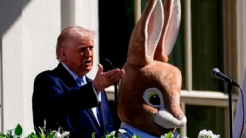 في مشهد وصفه المراقبون بالسريالي وغير المتوقع، ظهر شخص يرتدي زي أرنب الفصح بجوار الرئيس الأمريكي دونالد ترامب خلال حديثه للصحفيين في حديقة البيت الأبيض المزينة بأجواء عيد الفصح، بينما كان يتحدث عن تطورات الحرب مع إيران.