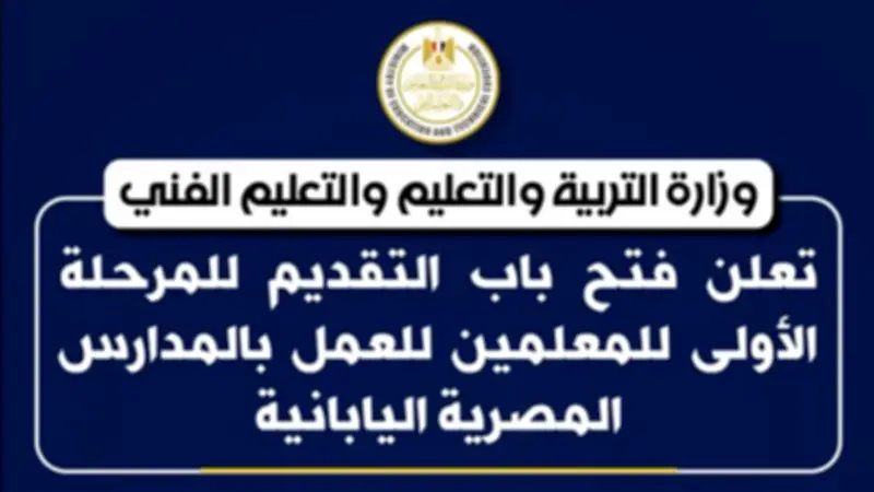 في خطوة جديدة نحو تعزيز النموذج التعليمي المتطور، أعلنت وزارة التربية والتعليم والتعليم الفني عن فتح باب التقديم للمرحلة الأولى للمعلمين الراغبين في الانضمام للعمل بالمدارس المصرية اليابانية، وذلك اعتبارًا من اليوم الثلاثاء الموافق 24 مارس 2026، ولمدة شهر كامل عبر الموقع الإلكتروني الرسمي: ejsadm.moe.gov.eg.